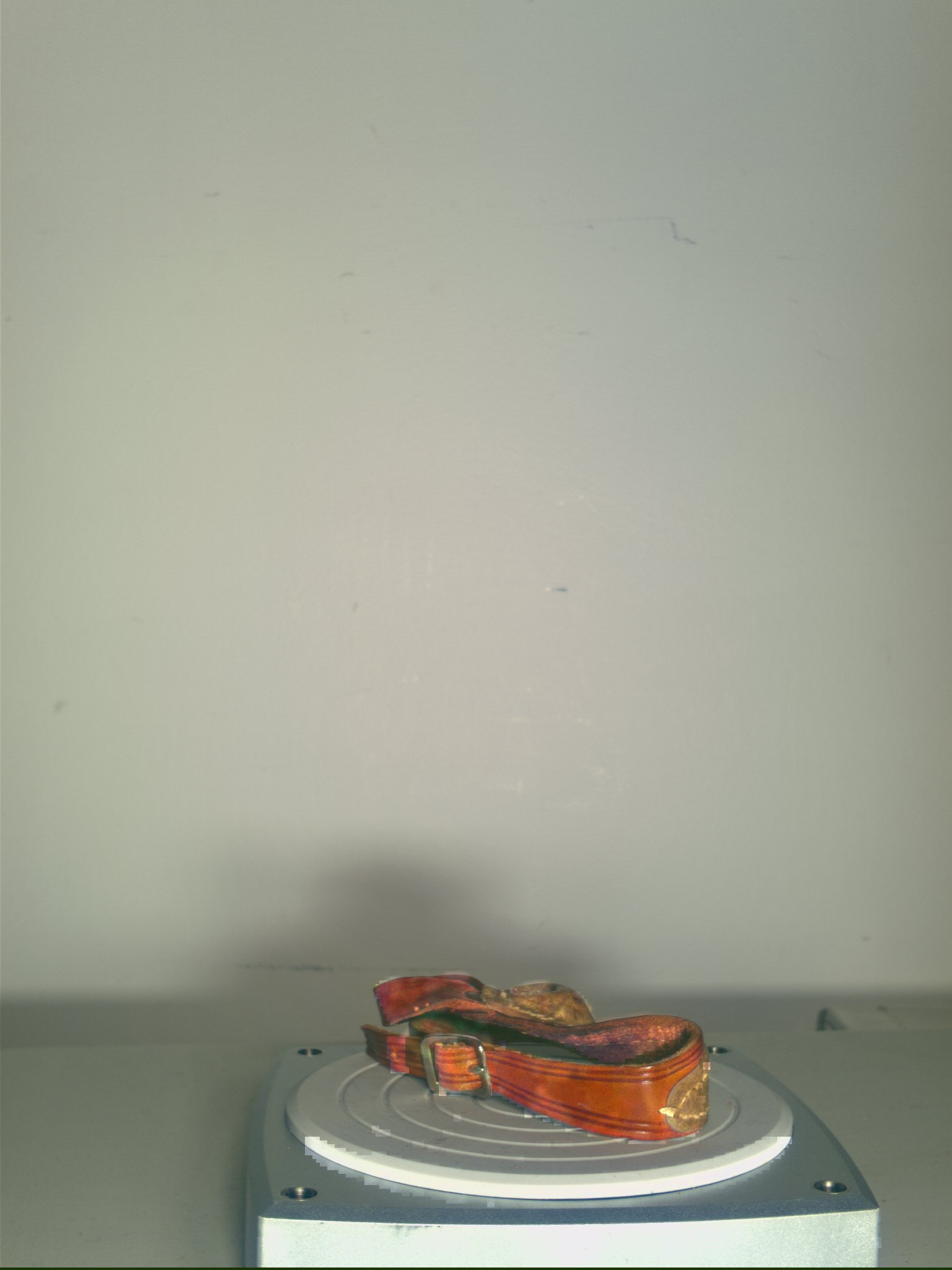 3D model of a tool used to protect the hand when making or mending sails. It is made from leather and a pad of resin forms the thimble-like head used to push a needle through the tough sailcloth. Dated early to mid-20th century. Physical object held at the Timespan Museum. Part of the Helmsdale Fishing Village reconstruction.